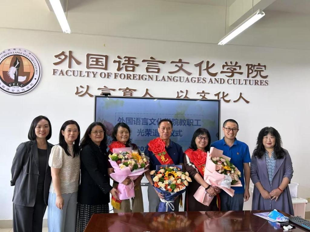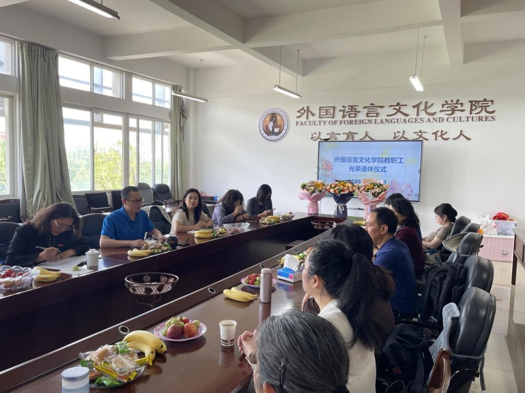 6月25日下午,外文学院教职工光荣退休仪式在博文楼312室举行,为郝兴跃、罗晓旭、李雪芳三位光荣退休的教师送上最真挚的祝福。外国语学院文化学院党政领导及教师代表二十余人齐聚一堂,共同见证这一温暖时刻。荣退仪式由孙冠华主持。