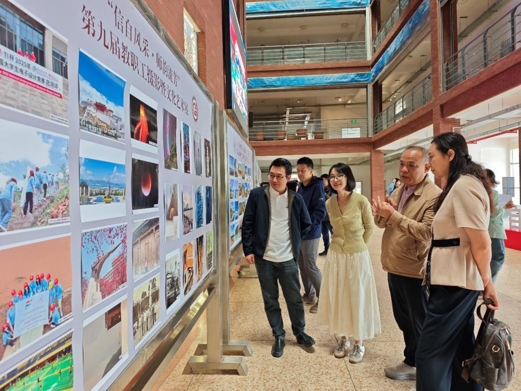 为庆祝中华人民共和国成立76周年,丰富教职工精神文化生活,展现学院教职工昂扬向上的精神风貌,9月29日,信息工程与自动化学院第九届教职工摄影文化艺术展在学院展厅隆重开幕。校妇联常务副主席、校工会副主席纳雪梅、校妇联副主席周鹭,学院领导班子成员、部分教职工代表共同参观展览。