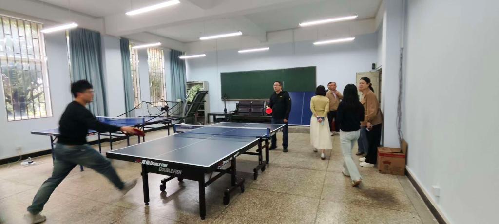 同时,考虑到乒乓球运动在教职工中的高参与度,学院对活动室墙面进行全面粉刷,选用耐磨、易清洁的专业运动涂料。不仅提升空间明亮度,更有效减少乒乓球撞击墙面造成的痕迹残留,为教职工营造整洁、安全的运动环境,让大家在课间、午休时段能随时开展竞技交流。