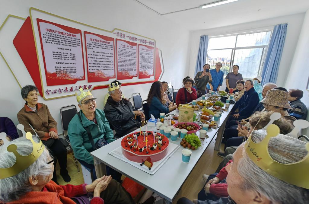 交流分享环节氛围热烈,退休教师们对学院连续多年在重阳节开展座谈活动表示感谢,并互相分享了退休后的生活:从书法绘画的雅趣到健身养生的日常以及长寿小秘诀。期间,学院工会特别为今年90岁、80岁的退休教师送上定制蛋糕,并为老教师们过集体生日。