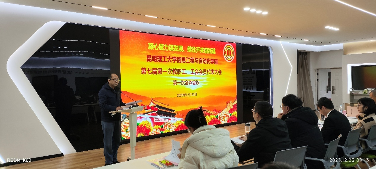 2025年12月25日上午,信息工程与自动化学院第七届第一次教职工、工会会员代表大会在信自楼126会议室举行。大会应到正式教代会代表 55 名,实到52名(3名代表因病请假),1名列席代表参会。校妇联副主席周鹭到会指导。